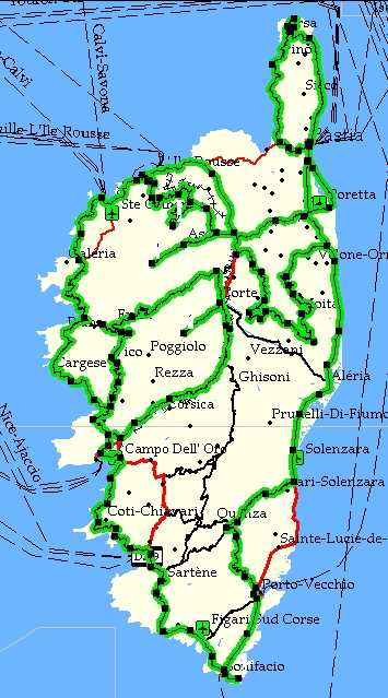 der Karte weiß eingezeichneten Straßen, wir hatten die Michelin Korsika