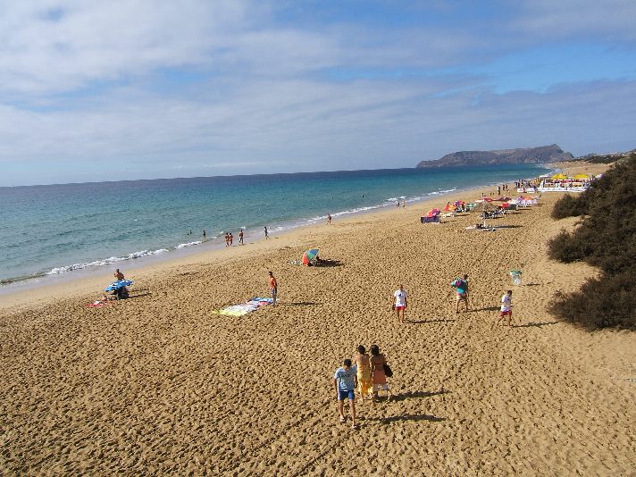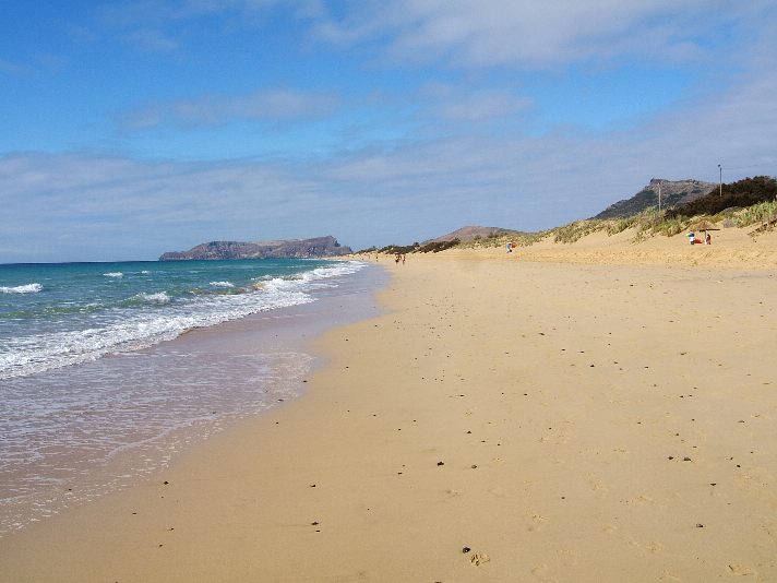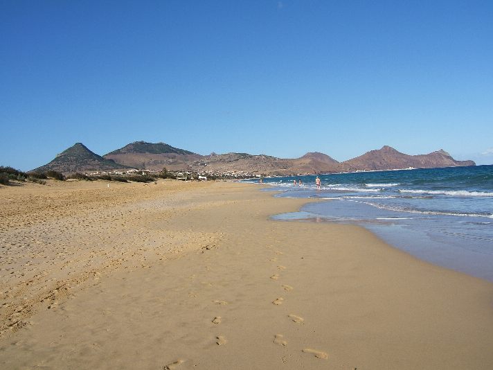 Porto Santo Das sind 20km Strasse, einige Hotels und 9,5 km goldgelber Sandstrand. Das Wasser, obwohl es der Atlantik ist, mit 23 Grad zum Schwimmen wunderbar. Madeira liegt am Rande des Golfstromes. |