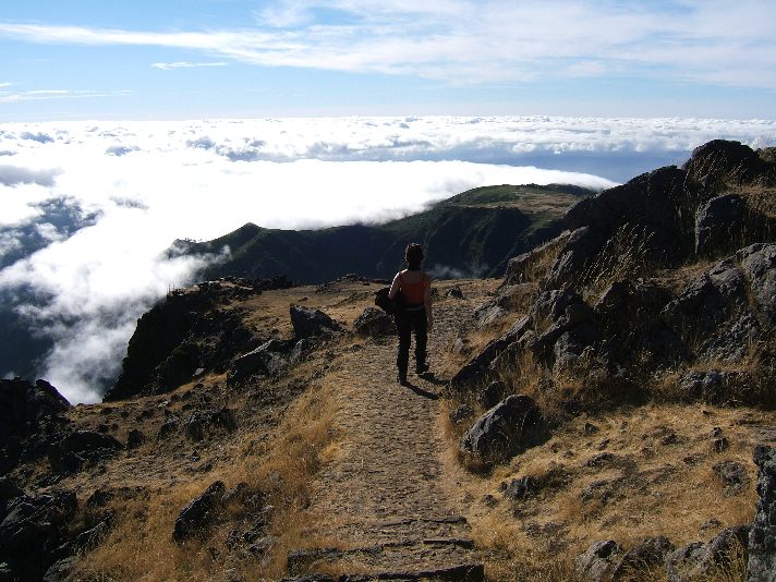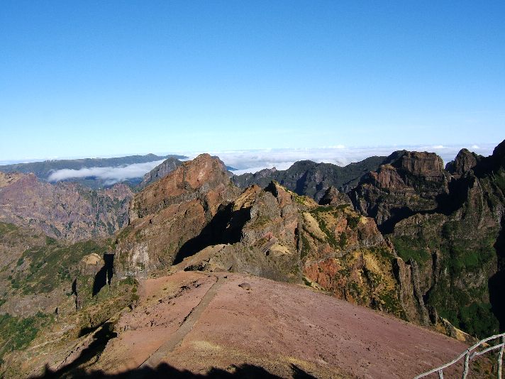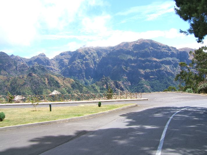 Die Straße von Funchal bis zum Poido Paß führt durch einen dichten Akazienwald, weiter oben überspannen Zypressen majestätisch die Fahrbahn. Die Strasse zum Pico de Aieiro zweigt am Pass ab und windet sich zum dritthöchsten Gipfel Madeira hinauf. Hier oben ändert sich die Landschaft, es wird schlagartig kahl. Unterhalb des Gipfels gabelt sich die Strasse. Nach rechts geht es nach kurzer Strecke 400m zu Fuß zum Miradouro do Junchal. Man blickt von dort weit in die Täler. An der Straßengabelung links sind es nur ein paar Schritte zum Gipfel, wo man eine tolle Rundumsicht genießen kann. |