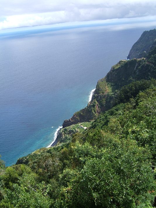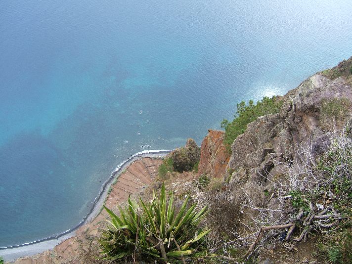 Cabo Girao dieser Aussichtspunkt liegt auf 580m Höhe, man schaut senkrecht hinunter auf den Küstensaum mit dem dunklen Strand. Einige winzige Terrassenfelder kleben förmlich an der Steilwand. Dies ist die zweithöchste Klippe Europas. Zurück auf der Haupstrasse geht es nach Canico de Baixo |
