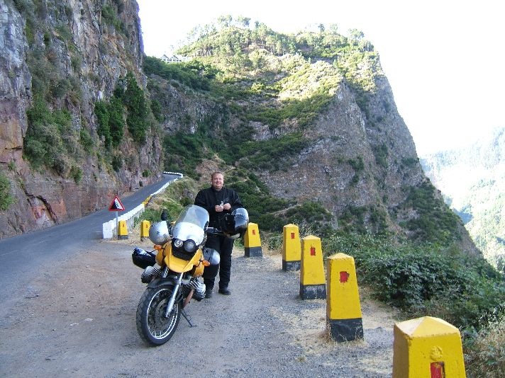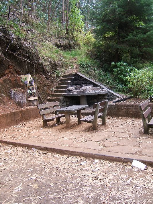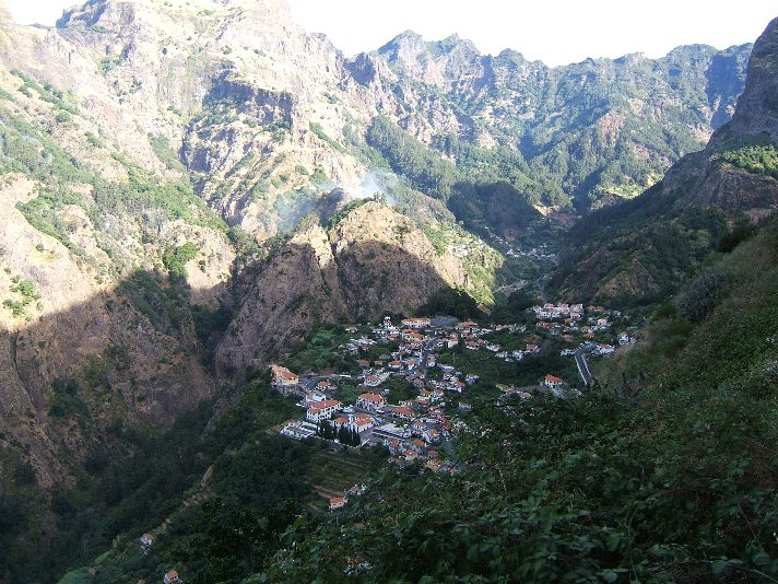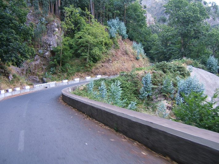 Es geht von Funchal zum Picos dos Barcelos in steilen Kehren bergauf in Richtung Eira do Serrado und Cural des Freiras. Auf einer Strecke von 11,5km überwindet die Strasse 1000 Höhenmeter, bei Eira do Serrado ist mit 1050m der höchste Punkt erreicht. Vom Parkplatz spaziert man um einen Bergsporn und steht in wirklich grandioser Aussichtsposition über dem tief unten liegenden Cural des Freiras. Die Aussichtskanzel erhebt sich 800m über dem Grund des Kessels von Cural des Freiras. Der Blick schweift über den Pico Grande bis weit ins Nonnental und zum zentralen Bergkamm. Der Miradouro ist morgens mit Reisebussen überfüllt, nachmittags hat man ihn für sich alleine. Nach dem Pass senkt sich die Strasse waghalsig ins Tal, es ist eine Stichstrasse die man auf gleichem Weg zurück fahren muss. |
