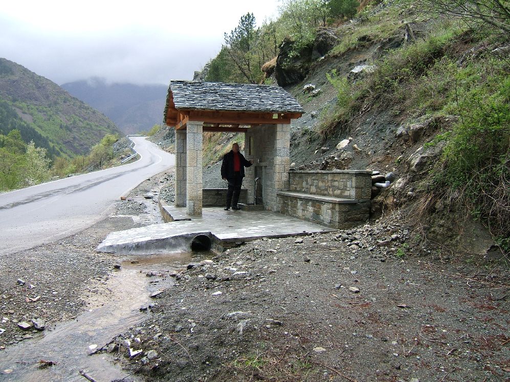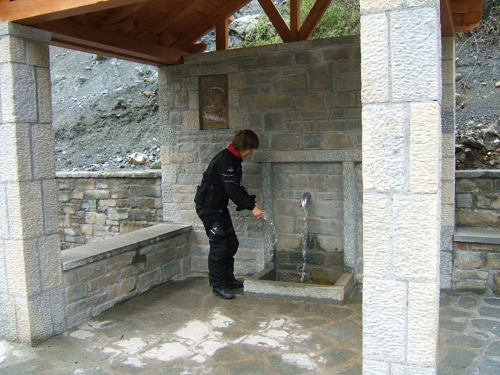 Es ist eine wunderschöne Strecke bis Karpensi, diese ständige, gleichmäßige Gleiten in den Kurven – schon fast meditativ J Unsere Wasservorräte füllen wir an den unzähligen Quellen auf, ab und zu ein kurzer Stopp um den Ausblick zu genießen, ansonsten stört nichts unserem Vorwärtskommen. Wenn vorhin auf der Hauptstraße schon wenig Verkehr war, so ist hier nun überhaupt keiner mehr. Hinter Karpensi ein Stück langweilige Hauptstraße bis Lamia, von dort über Amfiklia bis Arachova. Die sogenannte Parnassos Straße, sie bietet alpine Hochtäler, bewaldet, himmlisch ruhig. |