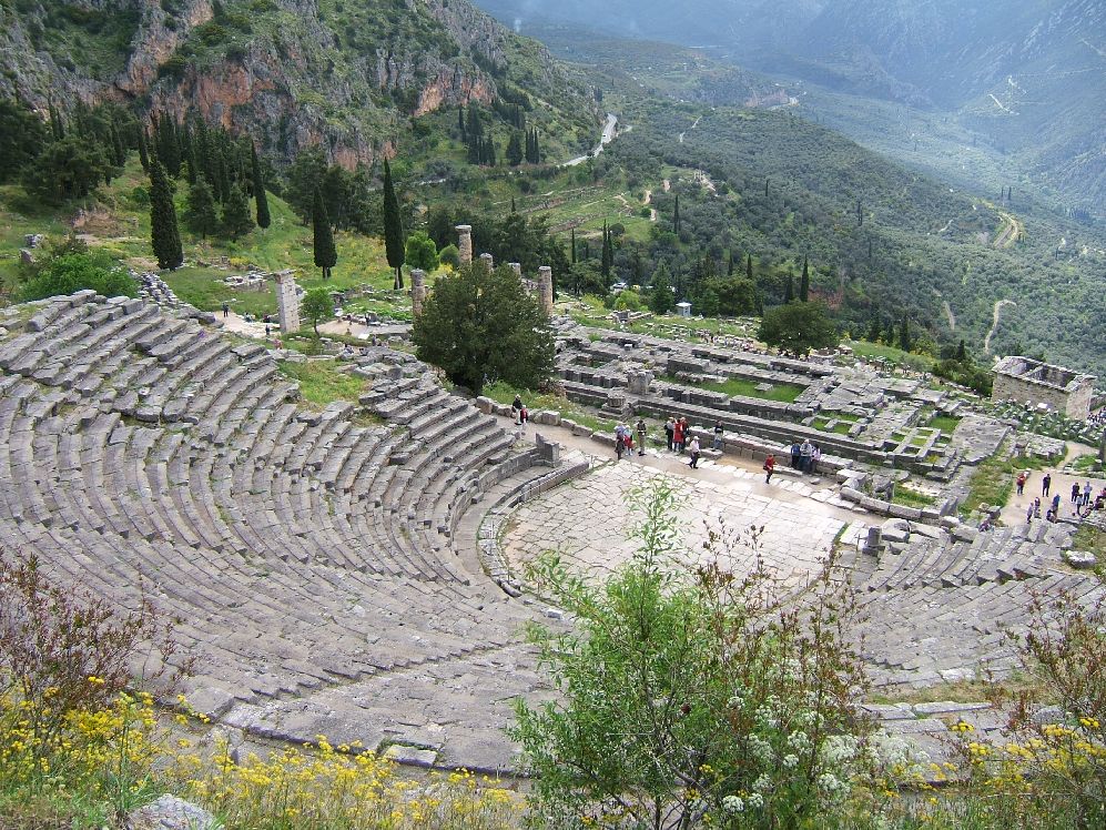 Am heutigen Morgen ist erst einmal Kultur angesagt: Delphi ist eines der markantesten und eindrucksvollsten Reiseziele in Nordgriechenland. Das Orakel – Heiligtum, einst als „Mittelpunkt der Welt“ verehrt, befindet sich an den gewaltigen Abhängen des schon gesteren befahrenen Parnass-Massiv oberhalb einer 200m tiefen Schlucht. Vom gestrigen Regen keine Spur mehr, bei der Besichtigung wird uns schön warm. |