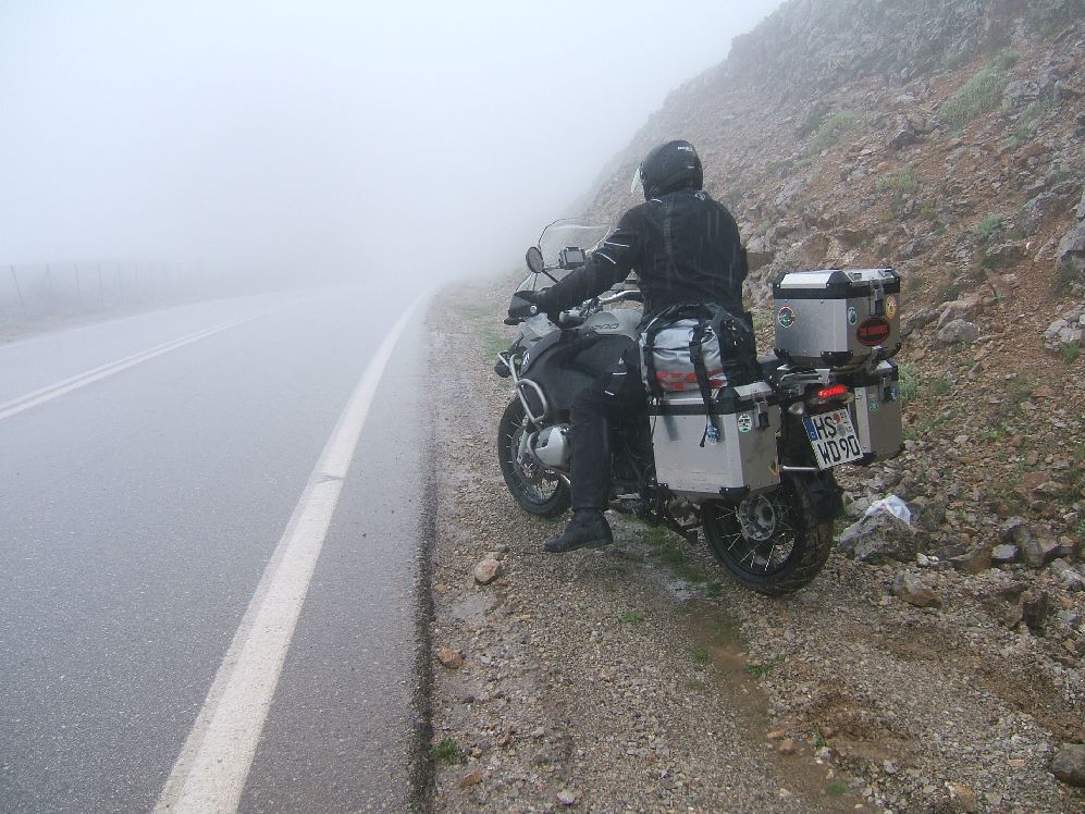Nachdem wir unserm Flusspferd, ich glaube die suhlen ganz gerne im Schlamm, wieder auf die Beine geholfen haben, nehmen wir doch die Hauptstrasse, um zu unserer Unterkunft auf dem Pilion zu kommen. Ein weiterer aufregender Tourentag geht nun nach Kultur und Wetterschock, super schönem Cruisen inklusive Bodenkontakt nach 250 Tageskilometern zu Ende. |