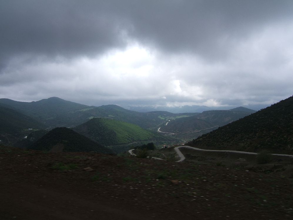 Aber irgendwann, wir zählen inzwischen schon die hinabführenden Höhenmeter, wird es wieder heller und trockener. Im ersten Gebirgsort halten wir auch an, um uns mit Kaffee und Essen zu stärken und aufzuwärmen. |