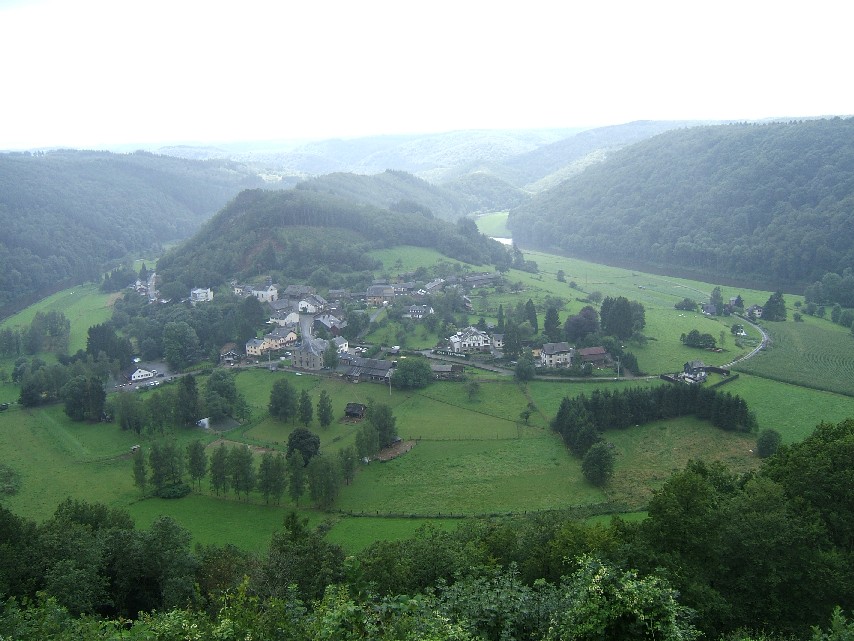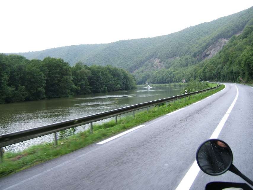 mehr Wand!! Die Strecke: Bouillon, Dohan, Les Hayons, Paliseul, Tellin, Marche, La Roche. Auch eine sehr schöne Strecke. Sehr kleine Sträßchen bis Paliseul, aber das Stück bis Marche haben wir vor Regen kaum gesehen. In Marche schnell die Sommerhandschuhe gegen Gore Tex getauscht und die restlich Fahrt bis La Roche war wieder wunderbar, ein wenig feucht auf den Strassen, aber der Regen hat sich schon wieder verdrückt. Fährt man La Roche von dieser Seite an, hat man die