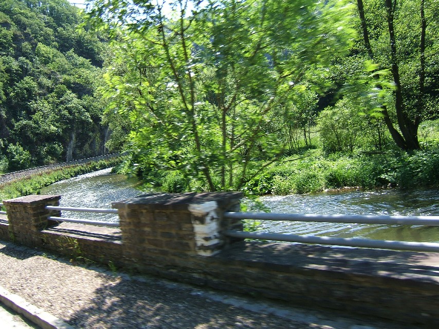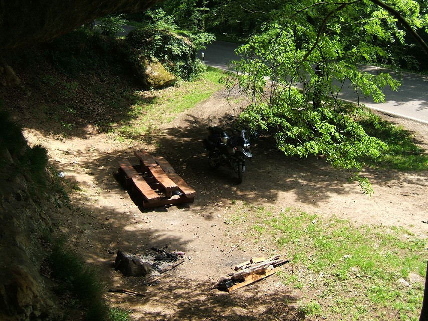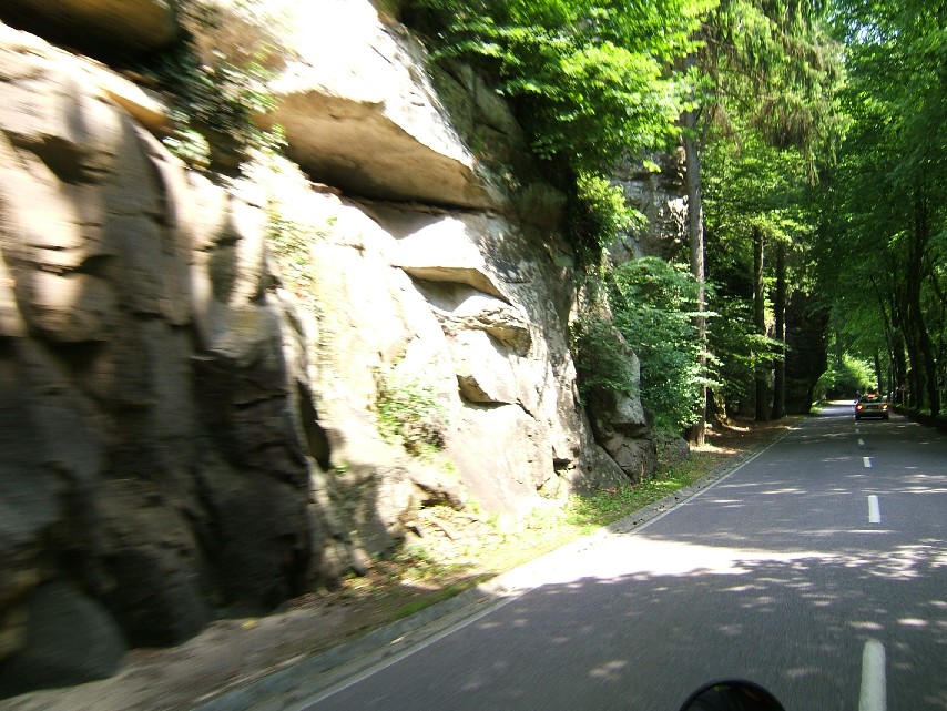 Losgefahren sind wir um kurz nach 9Uhr, 40 Minuten, dann sind wir schon in Eynatten hinter Aachen und der schöne Teil kann beginnen. Über kleine weiße Sträßchen bis Burg Reuland und von dort die Ourtalroute bis Weiswampach, die ersten Kilometer stimmen so richtig auf die zwei Tage ein. Die Straße so früh am Morgen kaum befahren, die Wiesen saftig grün und voller Blumen, Bikerherz was willst Du mehr? WEITERFAHREN !! Und das tun wir. Die Strecke führt uns über Trosvierges nach Clervaux, (immer wieder schön den Ort mit seinen Burgen rundherum zu sehen), von dort über Drauffelt nach Wiltz. Und dann geht es ab Esch-sur-Sure in 2 großen Schleifen rund um den „ Lac de la Haute-Sure“ . Der Stausee liegt auf dieser Streckenführung einmal links tief unter uns und einmal rechts neben uns. Romantisch, schön anzusehen, auch hier wie auch auf den kommenden Strecken die Straßen sind zum Teil wie ausgestorben. Es ist möglich das es an den Temperaturen liegt, es bleibt die ganze Zeit über 30 Grad. Da tut jede Waldstrecke nur zu gut!! Zurück in Esch-sur-Sure geht es, immer an der Sure vorbei, über Goebbelsmühle,. eine schöne kurvige Straße bis Ettelbrück. Die Sure ist mal neben uns und mal führt die Straße hoch, so dass der Fluss unter uns liegt. Immer wieder sehen wir Campingplätze und Menschen, kaum bekleidet im Wasser. Na, wer wird denn jetzt neidisch, wir haben eine SOMMERKLAMOTTE an!! In Ettelbrück beim Tanken klettert unsere Quecksilberskala im Schatten auf 35Grad!! Es geht weiter: Noch einmal bis Esch-sur-Sure und dann einen schönen Bogen über Grosbous, Bettborn, Berg-Colmar. Auch hier wieder leere, aber gute Straßen. Man hat so richtig schön Fluss beim Fahren, die Ausblicke immer wieder aufs neue schön. Die letzte Runde für heute geht über Mersch, Septfontaines, Redange und ab nach Luxemburg. Um Luxemburg zu durchfahren braucht man bei 33 Grad Freitags um 5 Uhr bestimmt gute Nerven und viel Ausdauer. Wir haben heute schon alles bewiesen. Sparen uns das Durchfahren und setzen uns lieber für 15 Minuten auf die Autobahn um Luxemburg zu umrunden. Die letzten 45 Kilometer, vorbei am Schenger Eck, (ein kurzer Halt hier ist Geschichte geschrieben worden) bis Remich, (eine quirlige Stadt an der Mosel) rechts über die Mosel nach Perl-Sinz, dort haben wir im Birkenhof Zimmer reserviert, und ach das Weizen schmeckt so Gut!!!!! In diesem Landhaus: Doppelzimmer 58Euro, haben wir Super gut gegessen, hatten ein kleines aber sehr geschmackvoll eingerichtetes Zimmer, kurz gesagt der Tag war perfekt!! Das Zimmer war wie gesagt ein wenig zu klein, wenn man mehr Gepäck als nur für eine Nacht dabei hätte, wäre es zu eng. Ihr kennt ja alle das Problem mit der ganzen Mopedausrüstung. Aber das Haus ein sehr schönes Ambiente und sehr freundliche Leute. Am nächsten Morgen war auch das Frühstück sehr gut. Als erstes fahren wir heute zur Saarschleife, wenn schon in der Gegend sollte man es sich schon angucken und ist wirklich lohnenswert. Aber jetzt geht es zurück bis Remich und dann abgesehen von kleinen Schleifen in die Weinberge führt uns die Strecke nach Echternach. Ab hier fahren wir so ca. 90 km in die Berge, über Osweiler, Herborn, Bech fahren wir bis Consdorf, Larochette, Heffingen und dann durch das Mullerthal zurück bis Echternach. Eine wunderschöne Strecke die abwechslungsreich über Hügel mit Weitsicht durch Waldstrecken und eben durch das Mullerthal mit seinen irren Felsformationen führt. Ab Echternach ist der Verlauf der Tour bis Dasburg immer am Fluss vorbei. Zuerst an der Sauer(Sure) und dann wie zu Beginn der Tour wieder entlang der Our. Idylle pur!!! Aber noch schließt sich der Kreis nicht!! Es ist so schön, heute sind es nur ca. 25 Grad und das Fahren macht noch soviel Spaß, das wir in Dasburg (übrigens nach einer riesigen Tankaktion - hier herrscht auf Grund der nahen Grenze der reinste Tanktourismus!!!) zurück bis Vianden fahren. Ein wunderschönes altes Städtchen! Wir wollen noch eine letzte Schleife drehen, die uns über Consthum, Kautenbach, Wiltz ( eine irre Kurvenstreck!! Da kriegtse echt nen Drehwurm!!) und von dort über Drauffelt nach Clervaux zurück nach Dasburg führt. Über Dahnen, Lützkampen, Ouren, Burg-Reuland fahren wir die gleiche Strecke bis Eynatten und sind nach 830 Kilometern, ohne Autobahnkilometer, das sind nochmals ca. 140, in 2 Tagen für`s erste mal gesättigt!!! Das Resümee der Tour: IMMER WIEDER! Tolle Gegend, viele Kurven, sehr viel Abwechslung in der Gegend und auch mit den Straßen, die in der Regel sehr gut sind. Als Karte hatten wir die ADAC Tourenkarte Eifel Ardennen Luxemburg Hier einige Eindrücke der Tour: |